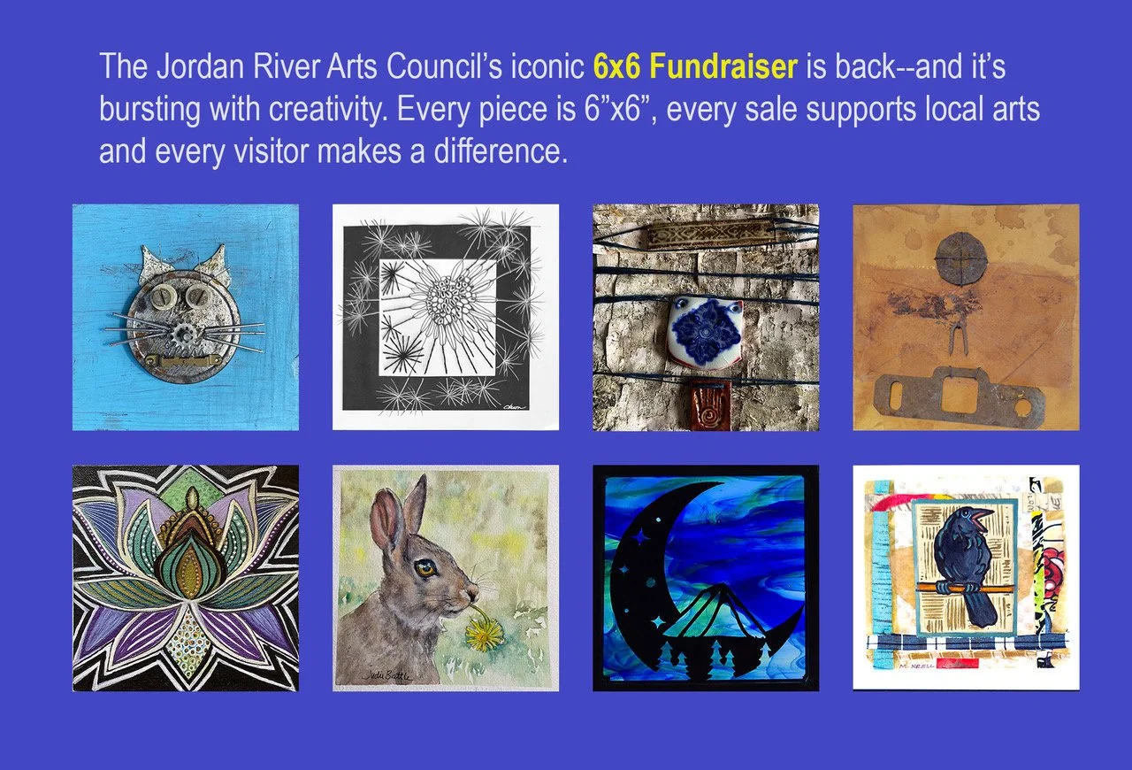 6x6 Fundraiser The Jordan River Arts Council invites you to celebrate creativity and community at our annual 6x6 Fundraiser. Artists and friends have contributed original 6”x6” works to support JRAC’s mission and regional arts programming.