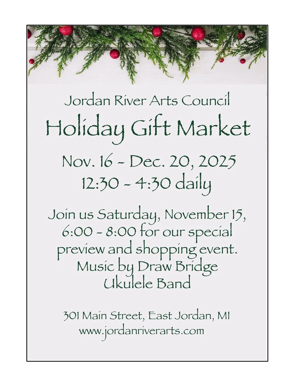 Holiday Market Sunday, November 16, 2025 12:30 PM Saturday, December 20, 2025 4:30 PM Jordan River Arts Council 301 Main St. East Jordan, MI 49727 United States (map) Google Calendar ICS View fullsize View fullsize View fullsize View fullsize View fullsize View fullsize View fullsize View fullsize View fullsize View fullsize View fullsize View fullsize View fullsize View fullsize View fullsize View fullsize View fullsize View fullsize View fullsize View fullsize
